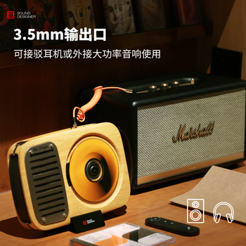 巫牌 单曲人生CD机复古壁挂式可充电专辑播放器蓝牙音响一体CD播放机 木纹色 新年创意礼物