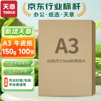 天章 (TANGO)A3牛皮纸150g 牛皮纸封面牛皮打印纸 凭证封面纸 牛皮卡纸绘图绘画纸 标书纸包装纸 100张/包