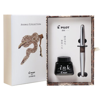 百乐(PILOT)签字笔88G学生书法练字钢笔金属笔杆高档礼盒墨水套装节日礼物 FPMR2银色蟒纹F尖