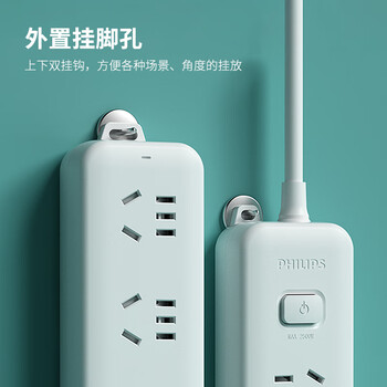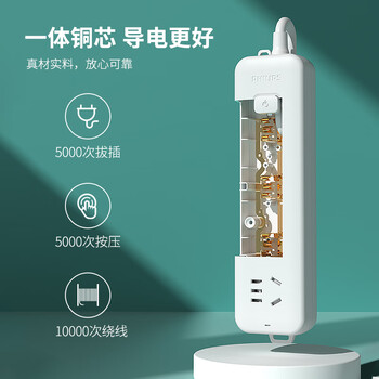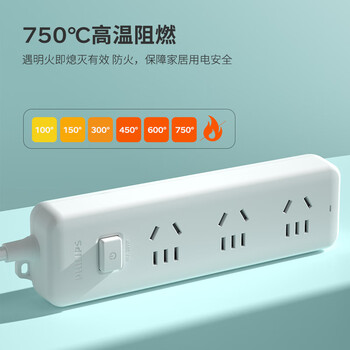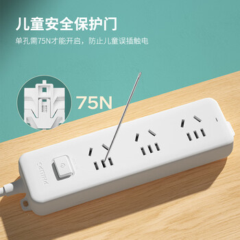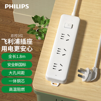 飞利浦(PHILIPS)3位总控 1.8米 儿童保护门 插线板/插排/排插/接线板/拖线板
