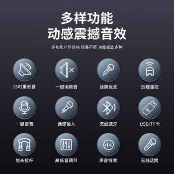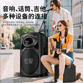 索爱(soaiy)15吋广场舞音响大功率便携式户外重低音蓝牙k歌大音量移动拉杆音箱室外演出设备双话筒A90