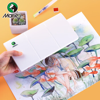 马利(Marie's)固体水彩颜料18色 内赠水笔瓷碟海绵盒装水彩 学生儿童绘画美术浓缩便携水彩 W-4018美术写生