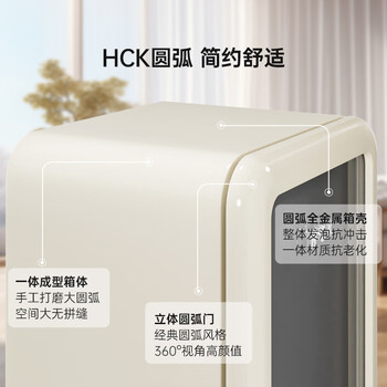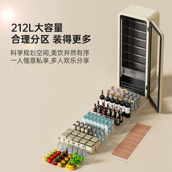 HCK哈士奇时尚冰吧212升风冷无霜冰吧全冷藏家用客厅小冰箱一级能效智感轻雾SC-208RI奶茶色