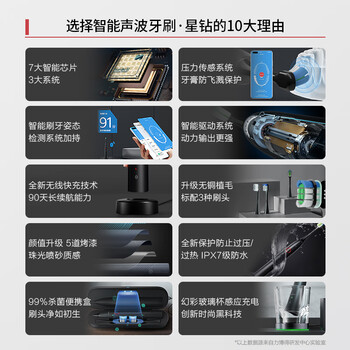 华为智选力博得智能声波牙刷星钻尊享 鸿蒙智选电动牙刷成人情侣款黑送男友送女友生日新年礼物礼盒 晶钻白