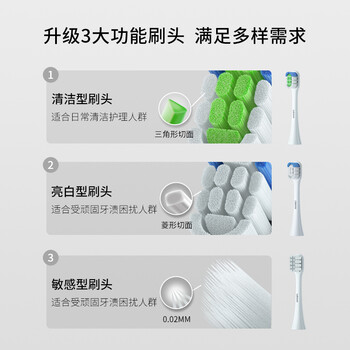 主机*1;无铜刷头(清洁)*1;无铜刷头(亮白)*1;敏感刷头*1;刷毛盖*3;感应充电座*1;输出轴套*1;说明书*1;消毒便携盒*1;幻彩感应充电杯*1