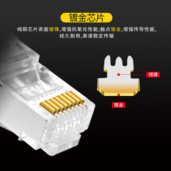 CNCOB六类水晶头工程级屏蔽千兆网络镀金rj45电脑网线接头cat6类水晶头1.3大孔径 30颗/袋