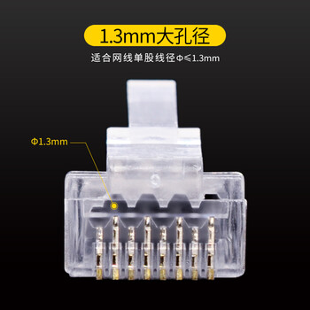 CNCOB六类水晶头工程级屏蔽千兆网络镀金rj45电脑网线接头cat6类水晶头1.3大孔径 30颗/袋 CN-T8TE13-23AB
