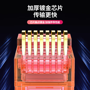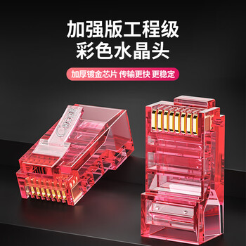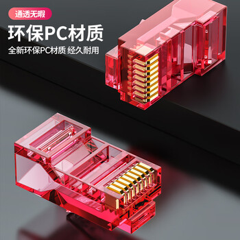 CNCOB超五类水晶头工程级彩色非屏蔽镀金纯铜rj45网线接头超5类水晶头红色100个/盒 CN-RD-102M2-23AC
