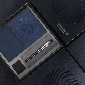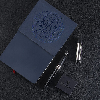 施耐德(Schneider)【礼物】钢笔笔记本礼盒 直液式成人商务办公礼品套装 男女礼物F尖-智者ID蓝色本2261-3
