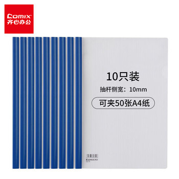 齐心(COMIX)10个装 A4/10mm抽杆夹/文件夹/报告夹/拉杆夹学生试卷夹资料册 蓝色EA101