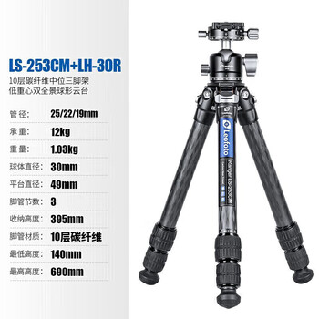 徕图三脚架 碳纤维轻便型低位拍摄摄影摄像微单单反相机星空旅行专业三脚架云台套装 LS-253CM+LH-30R