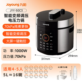 九阳(Joyoung)电压力锅5L双胆高压锅家用4-6人全自动智能预约开盖炖煮一体煲汤小米粥电饭煲JYY-50C3(C)