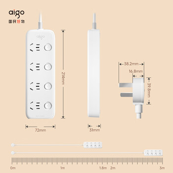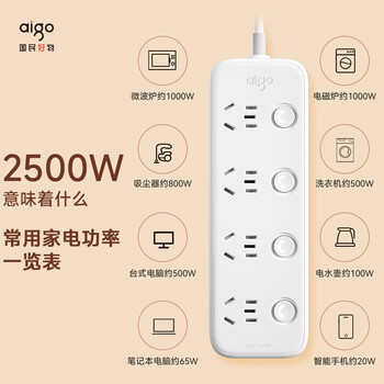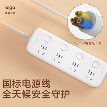 爱国者(aigo)插座/插线板/插排/接线板/拖线板/排插 4位分控全长1.8米独立开关大间距插孔AC0404新国标