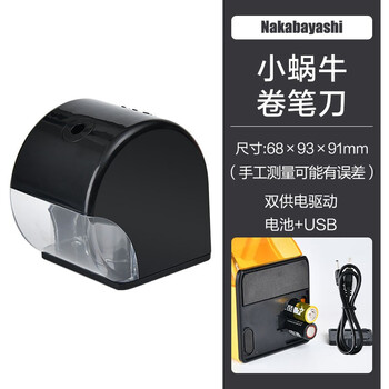 仲林(Nakabayashi)小蜗牛电动卷笔刀/铅笔削笔器/转笔刀 学生儿童/办公文具削笔机 黑色 DPS-W401-BK