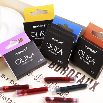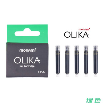 【开学必备】慕那美(monami)OLIKA彩色钢笔墨囊 透明墨胆手账钢笔原配墨囊5支装 绿色02099T