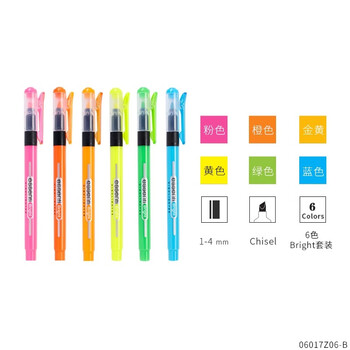 【开学必备】慕那美(monami)亮色荧光笔记号笔学生标记划重点 斜头1-4mm 6色套装06017-6