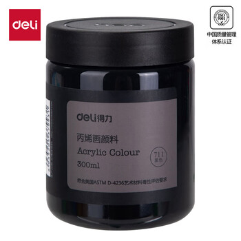 得力(deli)(deli)黑色丙烯颜料300ml大容量墙绘手绘绘画DIY丙烯画大桶装大瓶美术女孩儿童礼物速写美育工具
