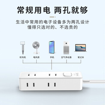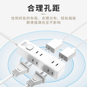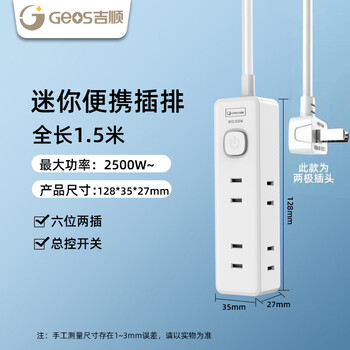 吉顺日标国标扩展转换插头一转六插座迷你两脚插座电源转换器 1.5米 6孔位 双脚