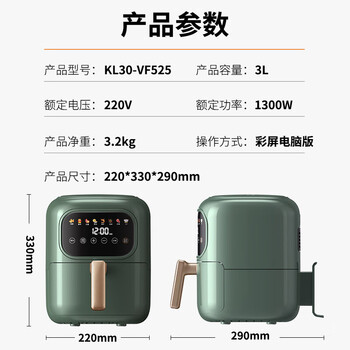九阳(Joyoung)空气炸锅 家用智能3L大容量多功能无油不粘易清洗全自动薯条机 KL30-VF525