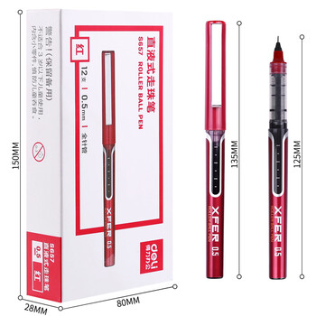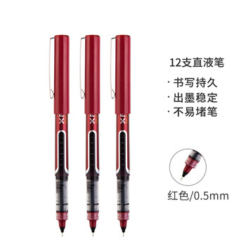 得力(deli)0.5mm直液全针管走珠签字笔 办公用品学生中性笔会议笔 12支/盒红