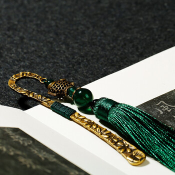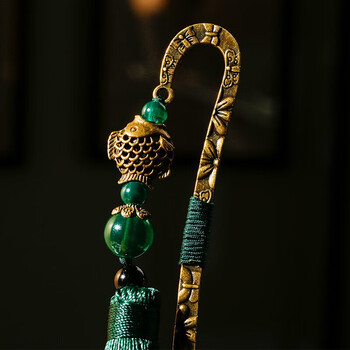 漢墨 复古风中国风书签 古典流苏绿花鲤鱼书签创意 礼物金属礼盒装