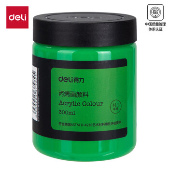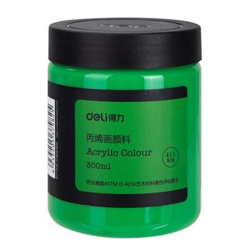 得力(deli)草绿丙烯颜料300ml大容量墙绘手绘DIY画画丙烯画大桶装大瓶美术绘画色彩73875美育工具