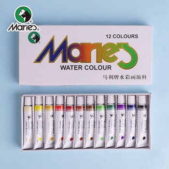 【全网低价】马利(Marie's)水彩颜料盒装12色12ml 调色盘水桶水彩本画笔水粉套装 美院学生初学者写生绘画水粉画颜料套装美术写生