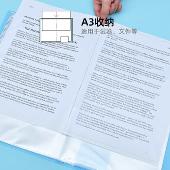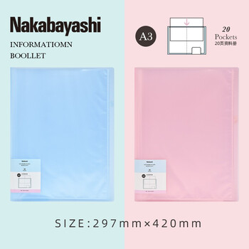 仲林(Nakabayashi)A3插页学生试卷袋文件夹资料册收纳册海报奖状收集册 20页 NBTP-001B 蓝色
