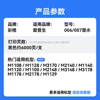彩格006墨水007颜料墨水适用爱普生M1108 M1128 M2148 M2178 M3148 M1129 M3178墨仓式墨盒墨水