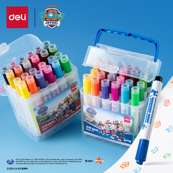 得力(deli)36色易水洗水彩笔汪汪队立大功可水洗印章头涂鸦画画学生儿童绘画笔王子蓝女孩儿童