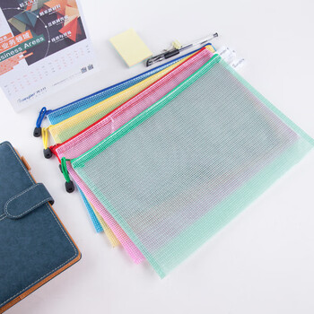 广博(GuangBo)12只装A4防水网格拉链文件袋/彩色档案袋 单色颜色随机A6112
