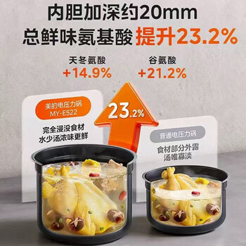美的(Midea)京东自营电压力锅深汤胆5L双胆高压锅电饭煲家用4-6人 全自动智能预约煲汤炖煮饭锅MY-E523