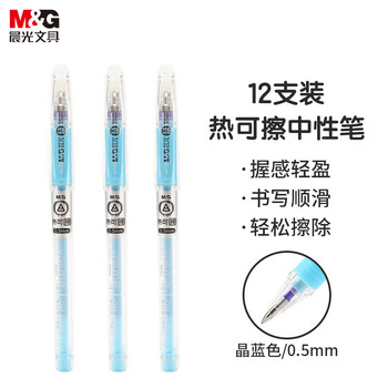 晨光(M&G)(M&G)文具 热可擦中性笔 简约拔盖子弹头晶蓝色水笔0.5mm 小学生用热敏摩擦 12支/盒AKP61115B2