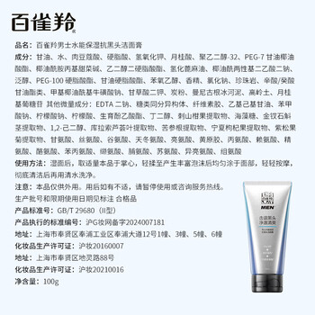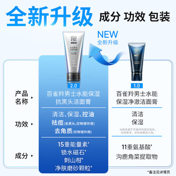 百雀羚【直播专属】男士洗面奶水能保湿洁面膏100g控油护肤送男友
