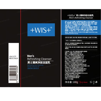 WIS男士清爽净肤洁面乳180g 温和去污水润清爽净透肌肤型男洁面秘籍