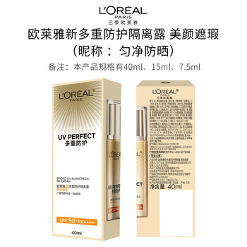 欧莱雅(LOREAL)新多重防护隔离露 美颜遮瑕 SPF50+ PA++++ 40ml(防晒霜 防晒乳 遮瑕 新旧包装随机发货)
