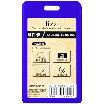 飞兹(fizz)5只装竖式彩色证件卡套/员工工作证/工厂胸牌胸卡(不带线) 蓝色FZ107005