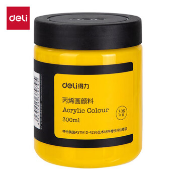 得力(deli)(deli)中黄丙烯颜料300ml大容量墙绘手绘绘画DIY丙烯画大桶装大瓶美术女孩儿童礼物速写美育工具