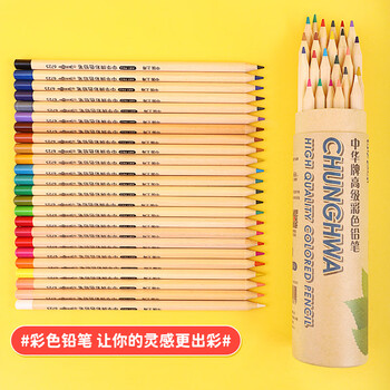 中华6725-24原木三角彩色铅笔儿童绘画开学季国庆出游礼物24色油性彩铅六一儿童节国庆出游礼物