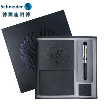 施耐德(Schneider)【礼物】钢笔笔记本礼盒 直液式成人商务办公礼品套装 男女礼物F尖-智者ID黑色本2261-1