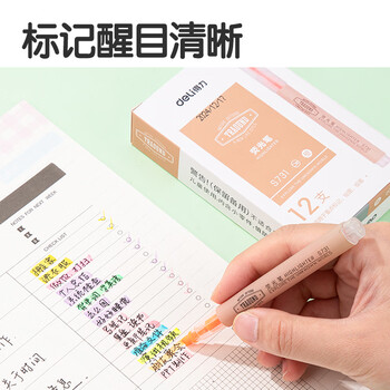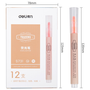 得力橙色醒目荧光笔 学生考试复习划重点笔 办公分类标记水性记号笔 12支 S731橙