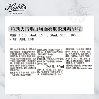 科颜氏(Kiehl's)安白瓶淡斑精华液50ml美白紧致礼盒 生日礼物