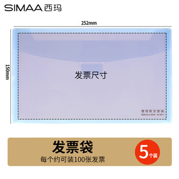 西玛(SIMAA)增值税发票专用信封发票袋 增票牛皮纸文件袋透明防水发票套 PP材质 浅蓝色 5个装