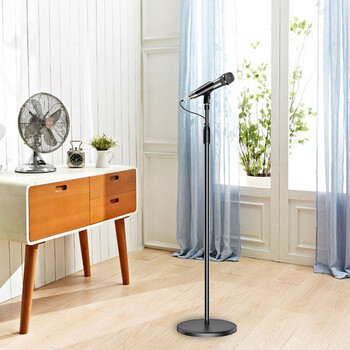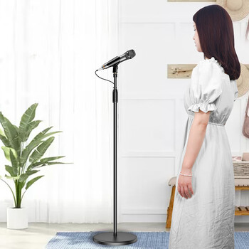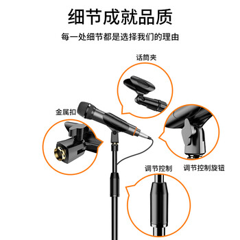 索爱(soaiy)M8麦克风话筒支架 金属铁盘圆底座手机直播支架演唱可伸缩易于收纳落地有线无线话筒通用支架