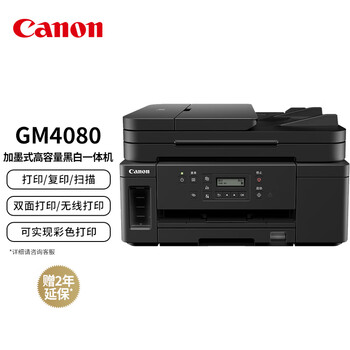 佳能(Canon)GM4080大容量可加墨黑白多功能一体机(打印/复印/扫描/作业打印 /WiFi 彩打可选 家用)