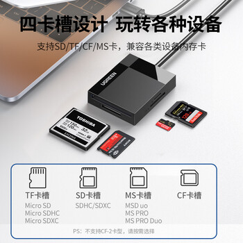 绿联 USB3.0CF读卡器多合一 支持CF/MS/SD/TF型相机行车记录仪监控内存卡手机存储卡 多卡多读 1米