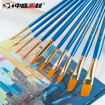中盛画材10支装水粉画笔套装尼龙排笔水彩笔丙烯油画颜料笔专业毛笔初学者美术学生专用初学美术写生