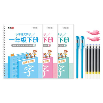 绍泽文化 小学语文同步凹槽练字帖 儿童笔顺控笔练字本 一年级下册3本装