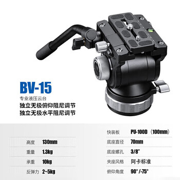 徕图(Leofoto)云台 液压云台 单反相机微单摄像中长焦镜头拍视频打鸟独立无极可调阻尼全景液压云台 BV-15