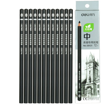 得力(deli)58121 美术素描炭笔 石墨铅笔 中款12支盒装 规格:素描炭笔